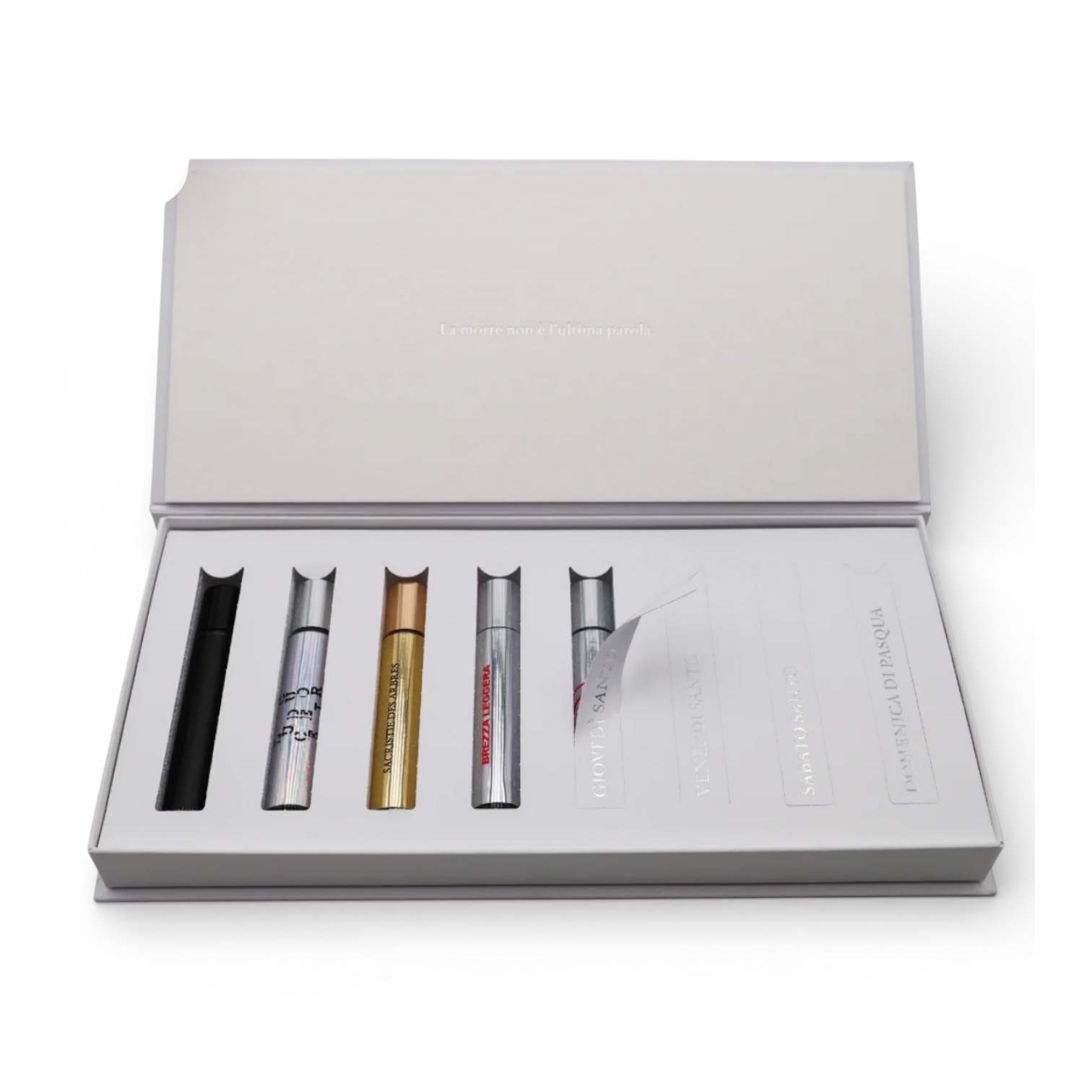 Dal 29 marzo al 5 aprile, ogni giorno si apre una casella che custodisce una fragranza da 15 ml, pensata per evocare il senso profondo della Settimana Santa. Ogni profumo è memoria e meditazione incarnata, un invito a scoprire, riflettere e lasciarsi guidare dall’emozione.